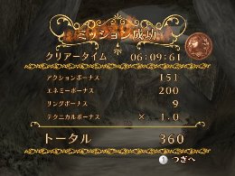 ミッションクリア後に表示されるリザルト画面は、6つのボーナスで構成され、その獲得したポイントがそのまま経験値になります。